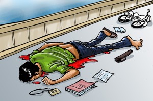 इसके बाद दोनों हवा में उछल के सड़क के उस पार और फिर मोहित को कुछ याद नहीं. शायद कई दिन बीत गए थे और आज जा कर अस्पताल में उसकी आँखें खुली. कमरे में इस वक़्त कोई नहीं था. बस एक अखबार पड़ा था जिसमें एक फोटो थी एक नौजवान की. वह गिरा पड़ा था सड़क पर और उसके हाथों में एक हेलमेट अटका हुआ था. उसके सिर से खून का तालाब सड़क पर बन चुका था. नीचे लिखा था: